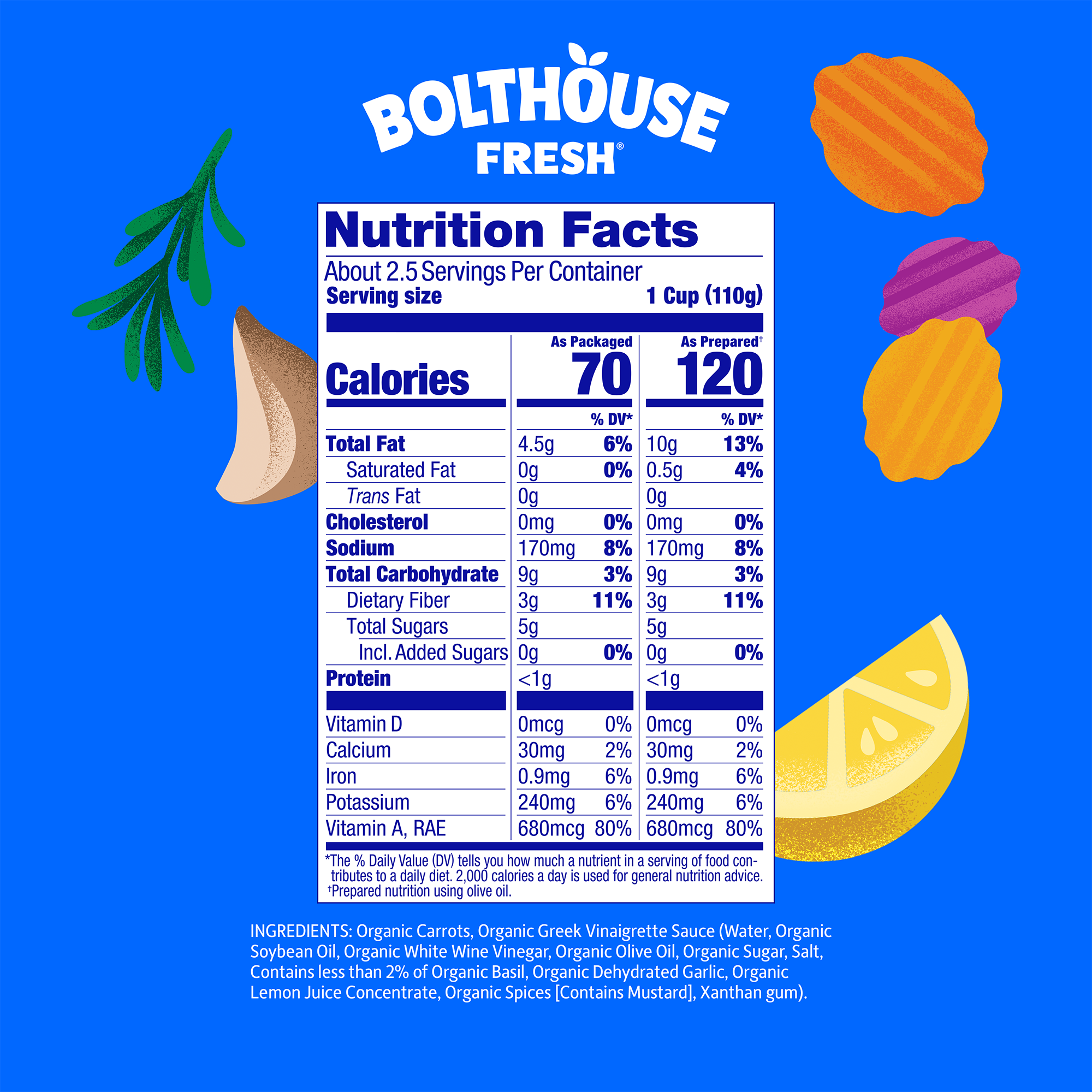 Organic rainbow carrots paired with a bright and lively blend of flavors. Perfect for those who enjoy aromatic herbs, fresh olive oil, and zesty citrus. Available in 10 oz bag.