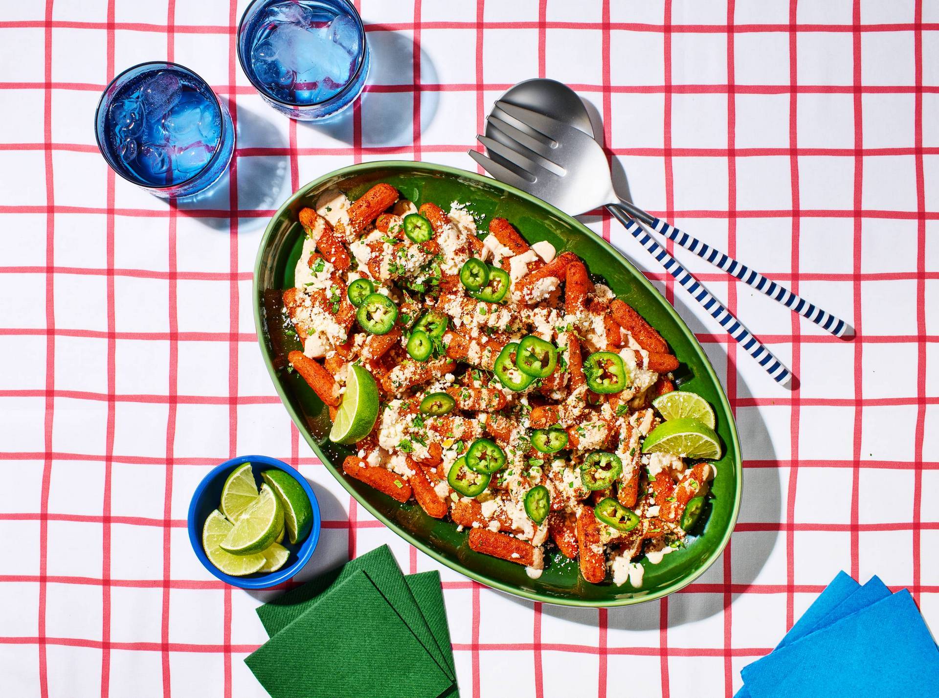 Preheat your oven to 425°F (218°C) and line a large baking sheet with parchment paper. In a large bowl, whisk together the olive oil, smoked paprika, ground cumin, chili powder, and garlic powder. Season with Kosher salt and freshly cracked black pepper. Add the carrots to the bowl and toss gently to coat them evenly.